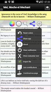 -Import any text file for quotes directly in your notification panel with all available options : each quote or item in one line; try different file managers if any problem to import your files