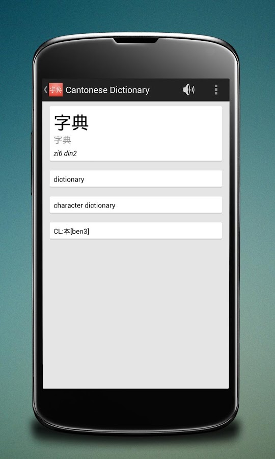I came up with the idea, when I searched myself for a good dictionary for Cantonese, but I've only found Mandarin, not working, and ugly online half-working ones. So I programmed my own with Holo Light and Google Cards UI.
