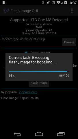 4) Open Flash Image GUI, browse and select kernel zip file, downloaded/loaded to sdcard in previous step.