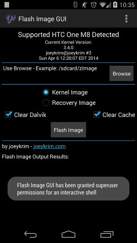 This app allows the flashing of kernels and custom recovery images in normal android mode!