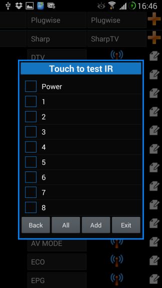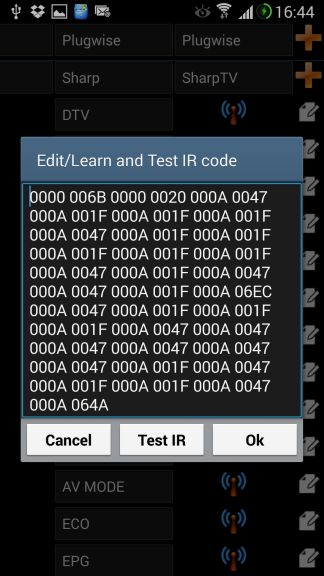 Finally the function of the device. Here you can test IR codes