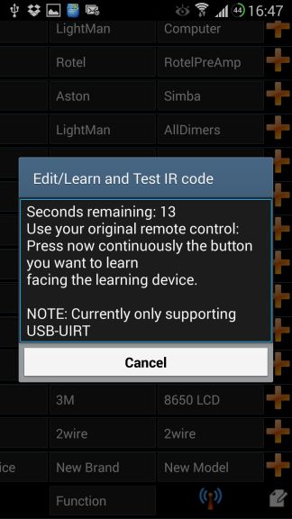 IR code learning from USB-UIRT via WIFI