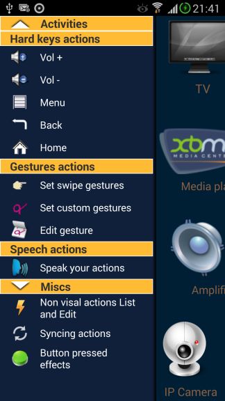 -Speech recognition for remote action ( not supported on Galaxy ACE, OK on Note 2, TAB 7.7).