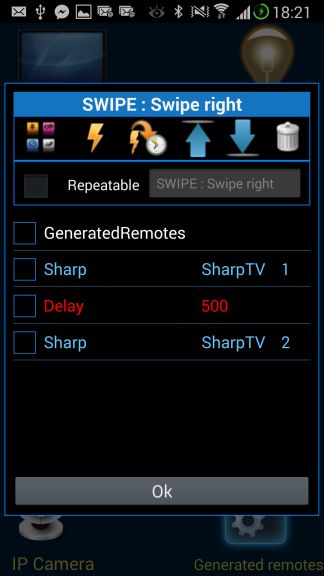 Add notifications : Showing ICON in status bar of sent actions : IR (red) or WIFI (blue), Delay and Activity