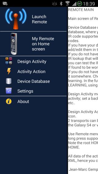 Basically if you decide to use use ONLY the GS4 internal IR blaster and have found working remote codes for your device, you can design your own remote in 5 minutes.