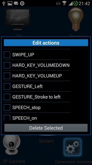 -List of non-visual actions (i.e.: HARD KEY, GESTURE, SPEECH ) in RemoteGate activity action, so you can delete / edit non visual actions.