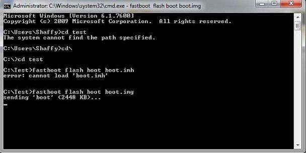 After installing the rom, when I tried to fast boot the boot image, I got stuck at