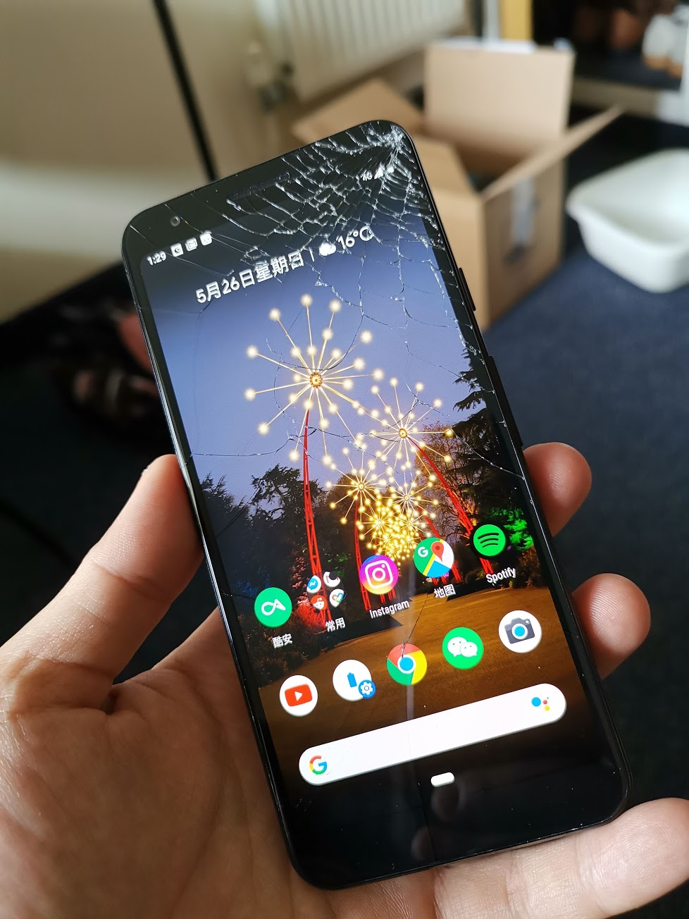 I bought it 2 days ago, through this 2days' experience, I am really satisfied with its camera as well as the battery. Today when I hold it and it slid out from my hand and then fall down on the floor. I should say the distance between my hand and floor is only 0.3m or 0.4m. But! the screen has been totally crashed!! I never use a phone has that horrible quality. For my last phone, XR, even not crashed from 1m dropped without any protection and the screen didn't crash at all. What should I do? Ask google for help or find some fix shop? That's really a FUXKing day for me!