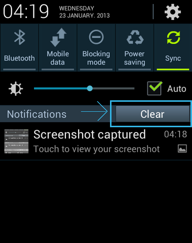 So now the clear all button is going to be showing on the top right of the status bar, but there will also be a clear all button in the notification area, like this picture: