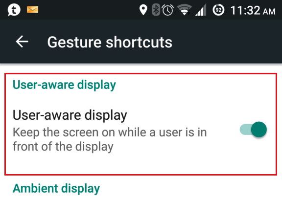 Yes, I miss that screen on feature also! It was called "user aware display".One request, can we get a feature added that keeps the screen on as long as its being looked at? I miss that.