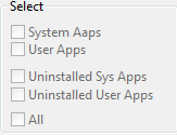 - For quick selection, use select check-box options - To select all, system apps, user apps, Uninstalled system and user apps.