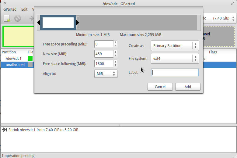- Click the fat32 partition and resize it to shrink partition:
