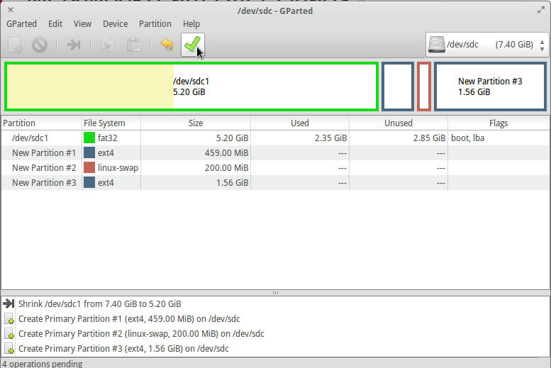 - After that you should end with this configuration (partitions sizes may differ) then hit Apply: