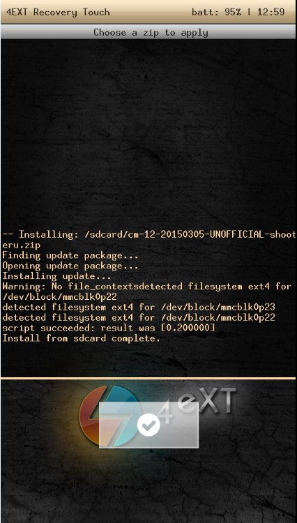 - You cannot install the ROM with 4ext recovery!