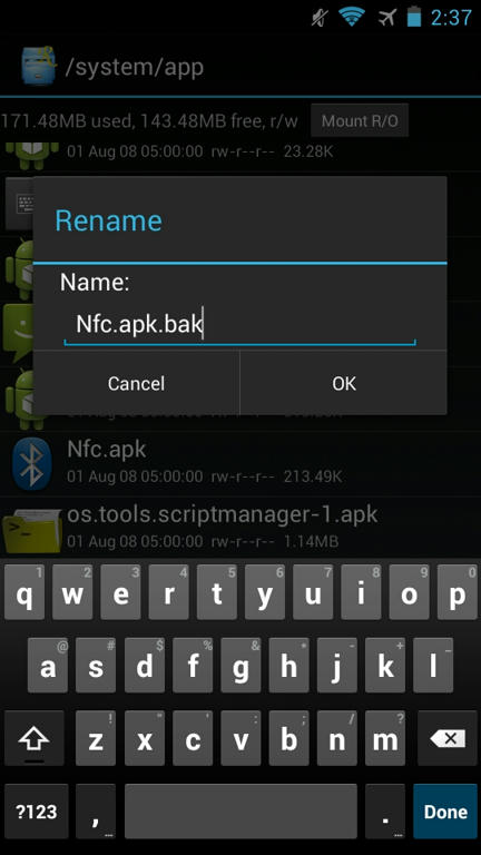 2. Long press on NFC.apk and rename to NFC.apk.bak
