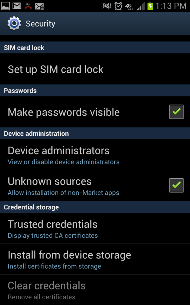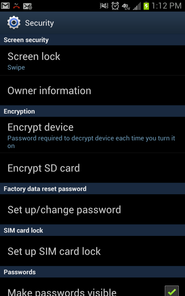 These are the only options i have on my security screens,This is on 4.0.4 XXLRI